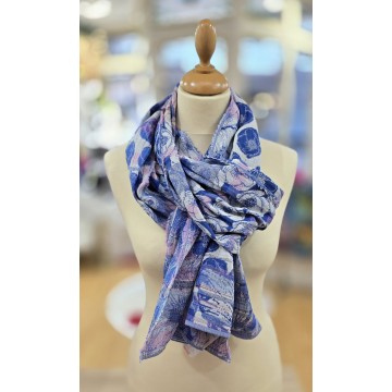 A la différence d'un tissu imprimé , l'étole est un tissage jaquard dont la particularité est de crée un motif par l'entrecroisement des fils de coton, cette technique confère au tissu un certain relief qui rends cette matiere plus vivante, aérée et très agréable a porter , reversible esthétique sur l'endroit comme sur l'envers.