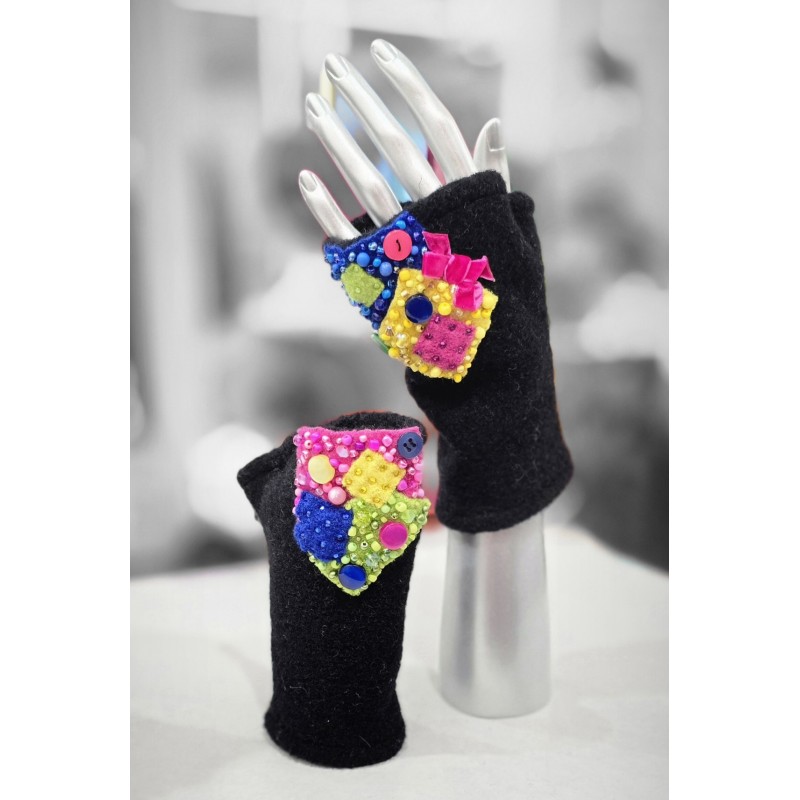 - Paume en laine, dessus de la main en microfibre imprimé doublé.