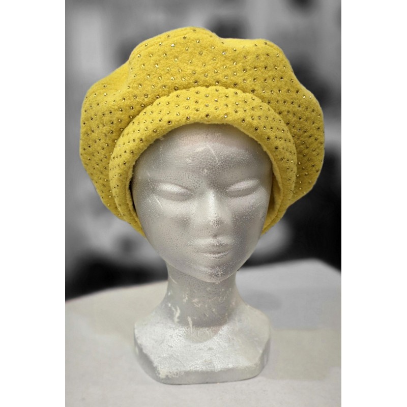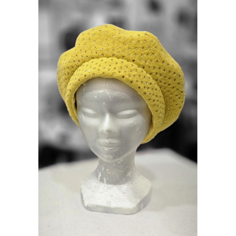 - Sublimé par trois fleurs en laine de la même couleur, strassées de cristaux Swarovski ou Préciosa posés un à un à la main.