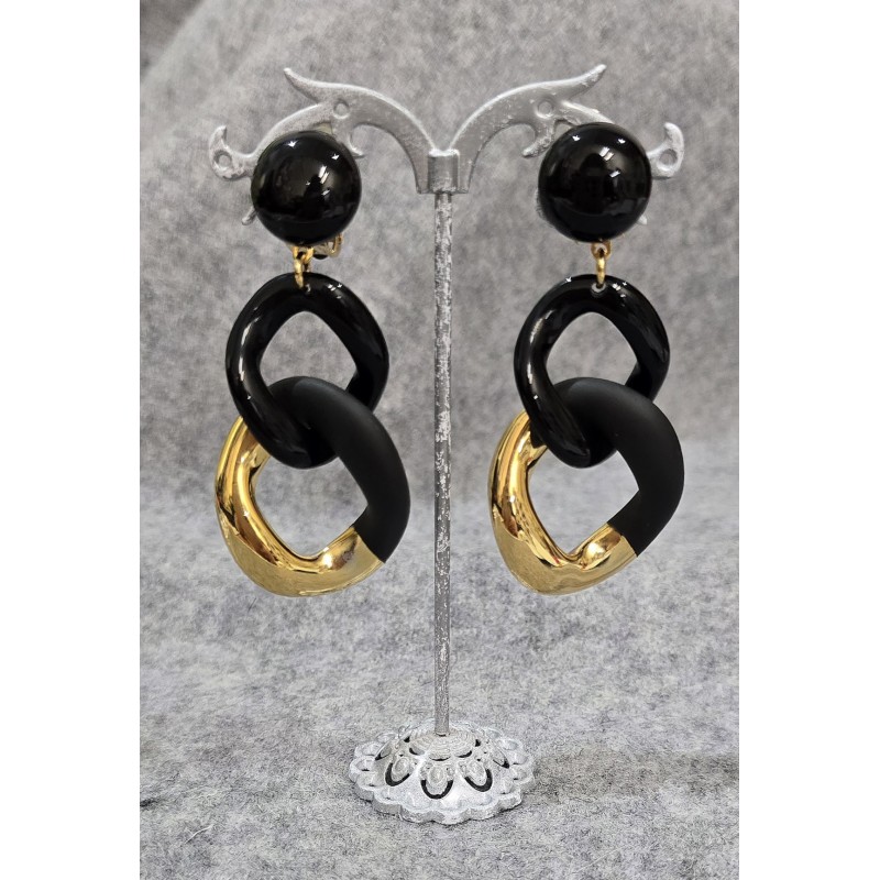 Boucles d'oreilles ( clip ) en résine et laiton rhodié raphia bi colore