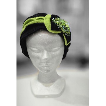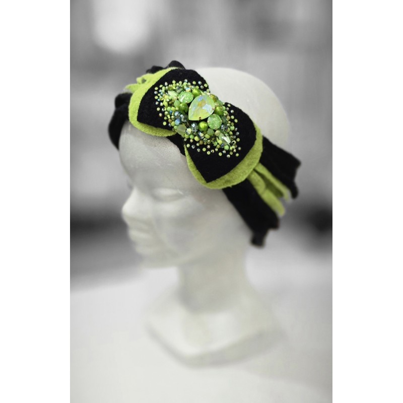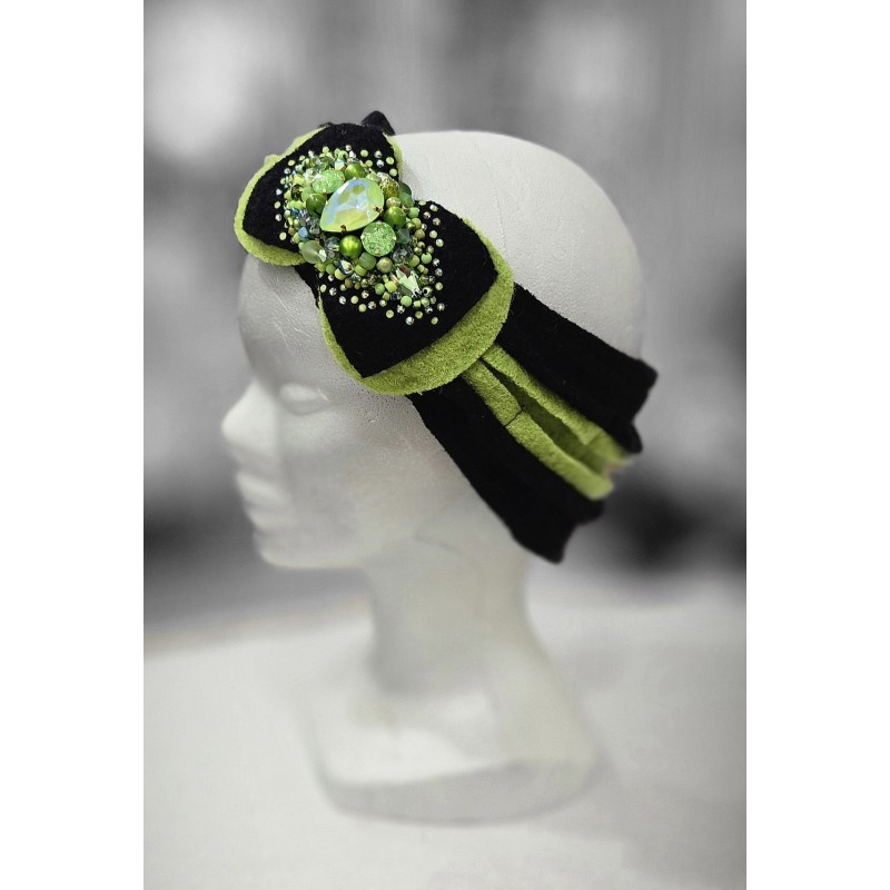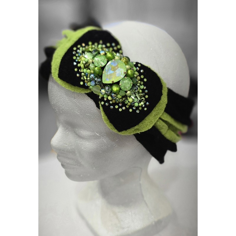 - agrémentées d'un double noeud brodés avec des cabochons en cristal et diverses perles de cristal, bohème, rocaille, miyuki , strass