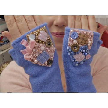 - Ces petits morceaux sont garnis de perles, boutons, rubans et cristaux Swarovski et Préciosa entièrement posés et cousus à la main.